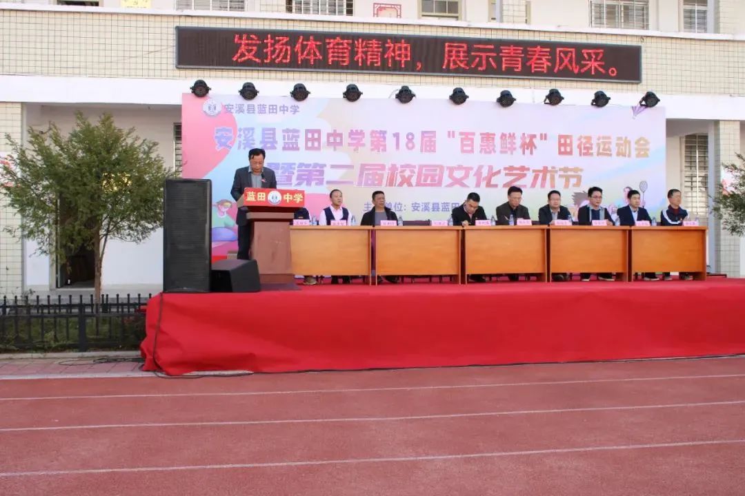 2021年12月09日,由廈門(mén)百惠鮮食品有限公司傾情贊助,以“譜寫(xiě)生命之歌 弘揚(yáng)運(yùn)動(dòng)精神”為主題的安溪縣藍(lán)田中學(xué)第18屆“百惠鮮杯”田徑運(yùn)動(dòng)會(huì)暨第二屆校園文化藝術(shù)節(jié)在藍(lán)田中學(xué)操場(chǎng)盛大舉行。開(kāi)幕式典禮由藍(lán)田中學(xué)校長(zhǎng)池國(guó)益主持!